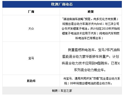 歐洲柴油車份額逐年提高,如西歐柴油乘用車07年的市場份額已達53.3%。歐洲車企在柴油車技術上處于領先水平。目前混合動力為重點發展方向。