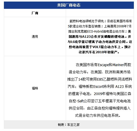 美國市場以E85混合燃料為主,但值得關注的是近幾年混合動力汽車銷量增長情況較好,從2000年-2007年銷售數據可以看出,8年來混合動力乘用車的銷售量復合增長率達到驚人的58.4%,其市場處于高速增長期,目前市場保有量已達66萬輛。雖然混合動力汽車在美國新能源汽車銷量的份額不到20%,美國卻是全球混合動力汽車的主要消費國,占07年全球份額的70%。日系廠商占據了美國的混合動力汽車領域主導地位,目前合計占據90%以上的市場份額,美國本土廠商福特和通用份額合計只有8%左右。