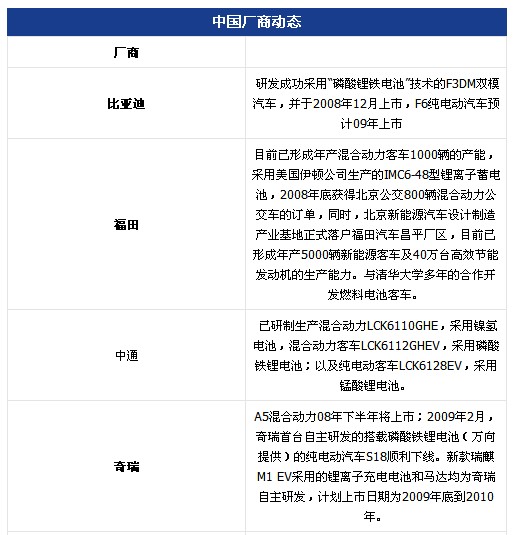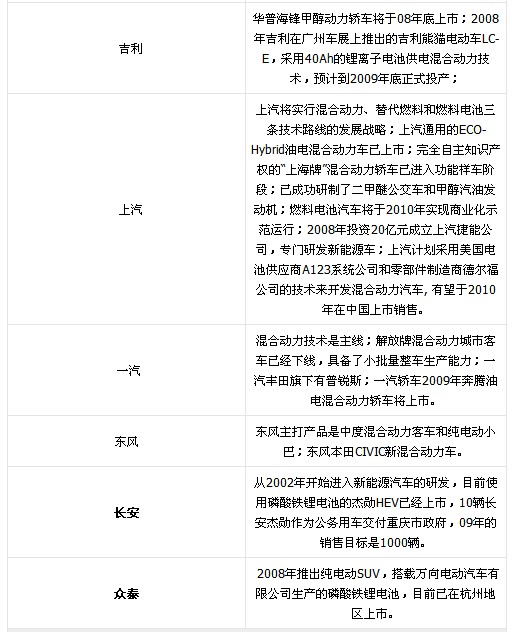 據統計,國內至少有30家客車企業已涉足新能源車研發;轎車方面,六大汽車集團以及奇瑞、吉利、比亞迪都爭相研發新能源車,企業數量總計超過40家。但中國新能源汽車產量小,投入商業化生產的產品較少,政府產業發展規劃和配套政策尚不明晰。2008年底首次出臺了新能源車補助政策,即:將在13個城市開展節能與新能源汽車示范推廣試點工作,并明確中央財政將對購置新能源汽車給予一次性補助。