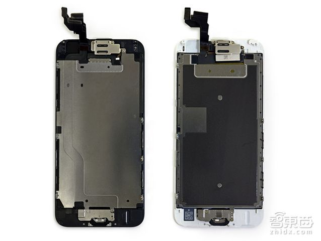 上圖展示的是顯示屏部分與機身部分的差異,下圖則為單獨的顯示屏部分,右側玫瑰金色為iPhone 6s。