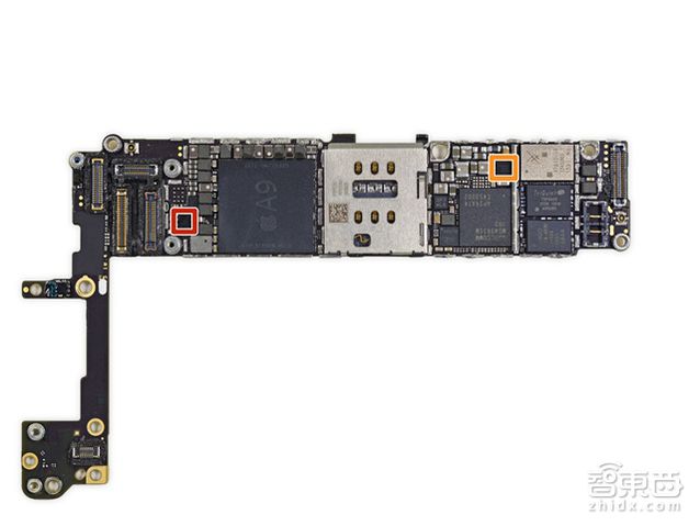 最后要展示的便是蘋果iPhone 6s的核心主板區域,幾乎所有重要的芯片均位于其中。