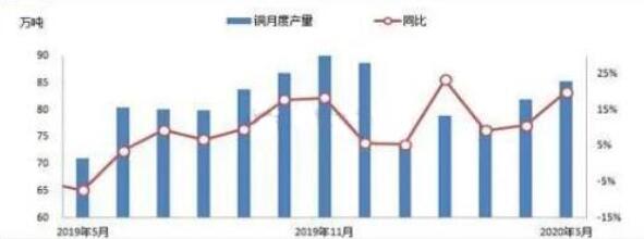據(jù)上圖所示,企業(yè)產(chǎn)量供應(yīng)相對穩(wěn)定,數(shù)據(jù)顯示,2020年4月國內(nèi)電解銅冶煉總產(chǎn)量為81.975噸,而5月銅產(chǎn)量増加至35.3萬噸,同比増加19.97%,市場沒有必要擔(dān)憂供應(yīng)問題。
