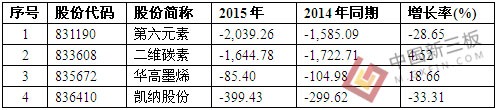 4家新三板石墨烯企業2014-2015年連續虧損