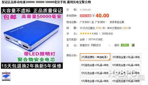 通過上面的截圖我們能夠了解到賣家最近熱賣的這一款電源,2萬毫安僅售40元,這樣的噱頭讓很多消費者盲目的下單,可以看到他們的交易量還是不少的,難道這些消費者都是為了貪圖小便宜才上當的嗎?我想也有很多不了解才隨大流的,所以小編在此為大家普及一下如何辨別移動電源的小技巧。
