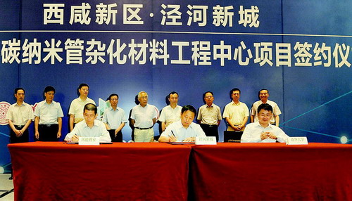 7月26日,西咸新區涇河新城管委會、清華大學、陜西國能鋰業有限公司簽約,石墨烯-碳納米管雜化材料工程中心正式落戶西咸新區涇河新城。據悉,清華大學國際領先的技術團隊將入駐涇河新城,致力于石墨烯-碳納米管雜化材料的研發與制備,在量產后將形成百億級產值規模。同時,以鋰硫電池為主的新能源產業,以碳納米管為核心的新材料產業在涇河新城“鋰谷——中國新材料產業基地”(以下簡稱:中國鋰谷)將形成產業集群。西咸新區涇河新城以產學研結合方式打造產業經濟發展的新模式正在形成。