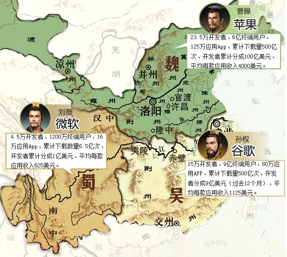 作為“三足”里最弱的一方,微軟掌門人鮑爾默將會在12個(gè)月內(nèi)退休。這是WP走向未來的一個(gè)風(fēng)險(xiǎn)——這一幕又和劉備白帝城托孤有些像——接下來故事的關(guān)鍵是,微軟會找到一個(gè)百折不撓的諸葛亮,帶著理想成功殺進(jìn)中原嗎?