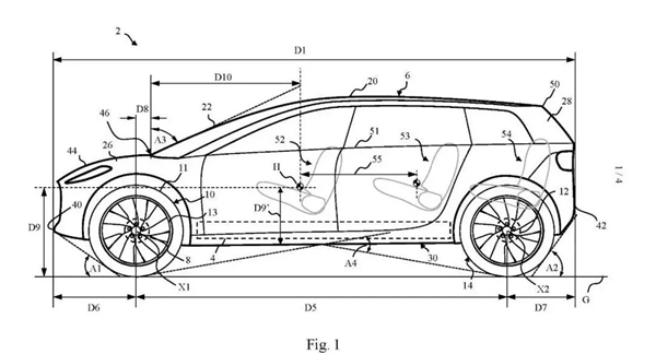 從戴森已公開(kāi)的專利看,戴森的電動(dòng)汽車有一些非常具有想象力的細(xì)節(jié)。如大尺寸輪轂的專利,其車輪外徑為車輛高度的45%至55%,使車輛高度在1.6米至1.8米之間,能夠具備至少0.26米的離地間隙。這樣一來(lái)能夠降低滾動(dòng)阻力使得車輛能夠提升續(xù)駛里程,同時(shí)還可以獲得更好的通過(guò)性。