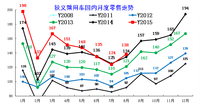 15年8月零售達到138萬臺,較2014年8月增長4萬臺,近幾個月增量有探底回升態勢,且8月的環比增14萬臺,這樣的6-8月與歷史重疊的現象是歷年沒有的。