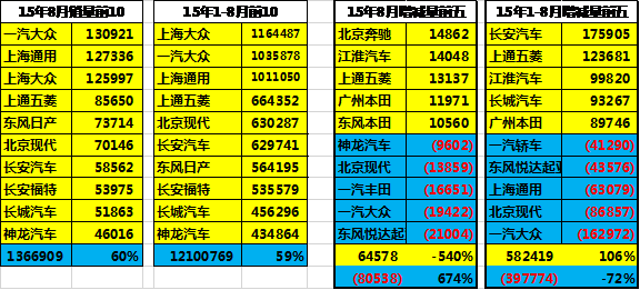 M.15年8月主力自主品牌車企表現較強