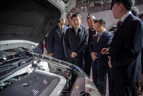 工信部部長苗圩蒞臨新能源車展一汽-大眾展臺