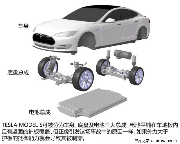 在看過了包括電池安全技術和車身被動安全方面的介紹,那MODEL S為什么還會出現碰撞后起火的情況呢?事發的一段時間后,埃隆?馬斯克發布了相關的聲明,聲明中說到,這次高速事故引發的車輛起火是因車輛底部的電池保護罩被硬物刺穿,強烈的撞擊使得刺穿的峰值力超過25噸并把6.35毫米的車底護板打了一個直徑76.2毫米的洞。