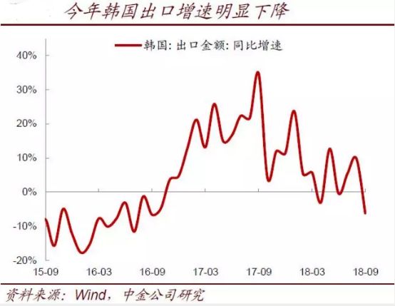 從韓國的出口產品構成來看,最主要的產品是半導體和半導體制造設備(電腦、手機等電子產品)、汽車以及汽車零部件。這兩類產品合計占到出口總額的接近40%。因此,今年韓國出口的下滑,很大程度上是這幾類產品出口的下滑。