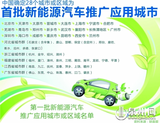 北京、天津、太原等28個(gè)城市或區(qū)域被確認(rèn)為首批新能源汽車推廣應(yīng)用城市。其中,包括泉州在內(nèi)的福建城市群被確定為新能源汽車推廣應(yīng)用區(qū)域。
