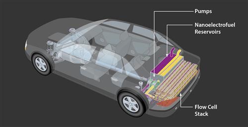 RANGE計劃中研究的電動車電池的三種化學催化劑之一就是水性電解液。這類電解液并不采用電極“浸泡”在電解液里的方式,而是采用外部存儲,時刻準備著發(fā)生化學反應產(chǎn)生電能。