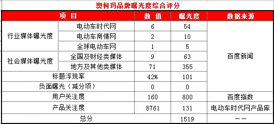 澳柯瑪電動車本期榜單排名繼續穩坐第十,綜合表現穩健。單從近幾期榜單的表現來看,在網絡平臺的主動新聞宣傳一般,在行業媒體曝光度上缺乏表現。不過縱觀整個十一月份,澳柯瑪的營銷宣傳提升空間還比較大,標題浮現率相較上期也有較大的提高,在新聞策劃上也有所重視。倘若適當結合各種時事熱點,節氣話題等進行品牌信息的綜合推廣,未來在整體口碑榜上將有很大的提升。