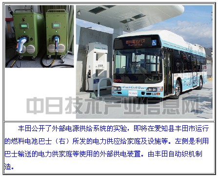 汽車廠商舉出的燃料電池車的特點(diǎn)之一是可向外部供電的功能。配備大發(fā)電容量燃料電池的公交車還可作為受災(zāi)時(shí)的電源進(jìn)行推銷。
