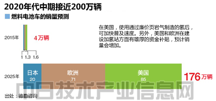 不過,也有分析認(rèn)為不能疏忽大意。據(jù)稱日本即使具有技術(shù)優(yōu)勢(shì),但在燃料電池車銷量方面估計(jì)會(huì)遠(yuǎn)遠(yuǎn)落后于歐美。德勤咨詢公司的調(diào)查結(jié)果顯示,到2025年,日本的燃料電池車普及數(shù)量約為20萬輛,而美國將增至85萬輛,歐洲將增至71萬輛。