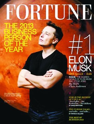 艾倫·馬斯克是個三面手,這已不是秘密:作為貝寶的合伙創始人,馬斯克還創立了太空探索技術公司,而且與特斯拉汽車公司重組汽車業務,同時對太陽能公司能源部門進行再整頓。對馬斯克而言,2013年尤為不平凡:相較于十年前的蹣跚起步,特斯拉已經成為全球最知名的全電動汽車制造商,前三個季度收入就增長了12倍多,其今年銷售額有望突破20億美元,在汽車最近銷量低于此前分析師預計數據后,股票反而漲到迄今為止的四倍多。馬斯克8月又發布了他計劃在舊金山和洛杉磯之間建立“超級高鐵”的想法,這再次掀起美國人對超高速交通的熱議。正是這些獨創令馬斯克身價倍漲,但卻是膽識與堅韌令他成為本年度“《財富》商人”。