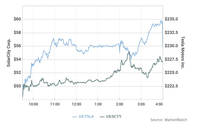 SolarCity和特斯拉的股價走勢