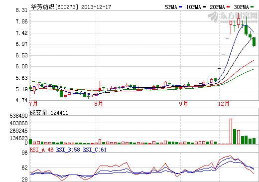 12月3日,華芳紡織公告稱,爭(zhēng)取在2013年12月26日之前披露重組預(yù)案或報(bào)告書,但公司卻于次日便公布了預(yù)案。受此影響,華芳紡織股票開盤后連續(xù)4個(gè)交易日漲停,而市場(chǎng)預(yù)期則在于華芳紡織將在置出所有資產(chǎn)和負(fù)債的同時(shí),還將注入具有盈利能力的浙江嘉化能源化工股份有限公司(以下簡(jiǎn)稱,嘉化能源)100%股權(quán)。