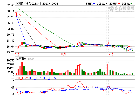 猛獅科技(002684)上市不足一年股價即出現虧損,公司被質疑造假上市,造假疑點之一是據猛獅科技2012年的年報披露,公司產品毛利率高達25.86%,處于行業上市公司最高水平,遠高于同行業平均17.40%,在同行業中猛獅科技并未有規模效應和壟斷性來獲取較高毛利率的優勢。猛獅科技2011年毛利率高達27.09%,隨后逐年下滑,3季度更是下滑到19.76%,接近行業平均水平,所以猛獅科技2011年27%左右的毛利率或存在一定的水分。而公司近期的毛利率水平或回歸為猛獅科技真實的狀況。所以不排除猛獅科技財務上有粉飾報表的嫌疑。