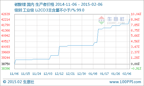 本周國(guó)內(nèi)工業(yè)級(jí)碳酸鋰行情小幅上揚(yáng),價(jià)格從41900元/噸上漲至42286元/噸,上漲了0.92%,同比去年上漲 ... 查閱全文