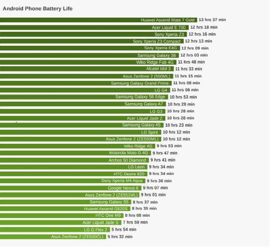 外媒評電池壽命最長的安卓手機 華為Mate 7 Gold奪冠
