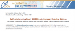 美加州能源委投近5000萬美元支持燃料電池車加氫站建設