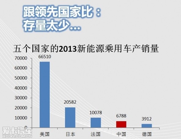 點評:新能源汽車的發展已經到來,由于2013年國家政策一直不明朗,中國新能源汽車的銷售數據和美國、日本的差距在被進一步拉大,但是2014年國家政策會再度偏向新能源汽車,而中國與西方發達國家的差距將會縮小,而未來反超將會成為可能。