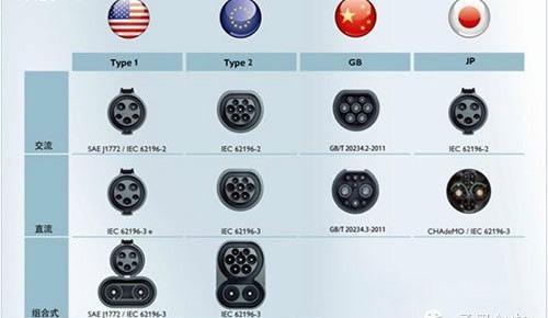 目前全球電動汽車的充電標(biāo)準(zhǔn)共有四種形式:分別為中、歐、日、美標(biāo)準(zhǔn)。四國標(biāo)準(zhǔn)之間存在著一定的差異。
