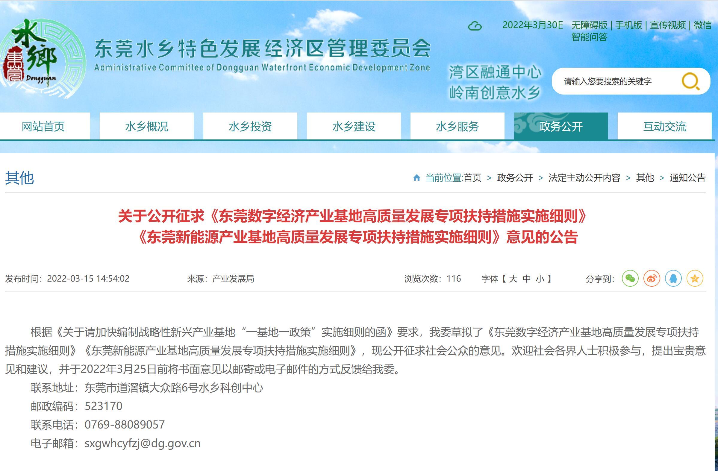 關于《東莞數字經濟產業基地高質量發展專項扶持措施實施細則》 《東莞新能源產業基地高質量發 ... 查閱全文