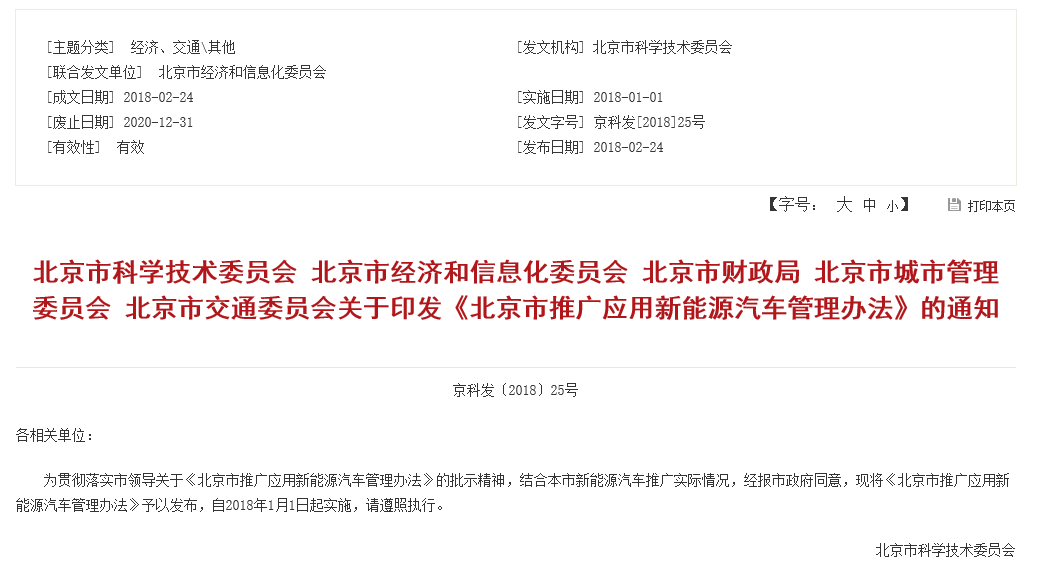 北京五部門:聯合發布推廣應用新能源汽車管理辦法
