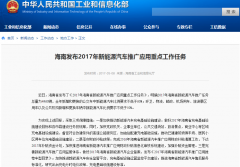海南明確2017年新能源汽車推廣任務總量為4960輛