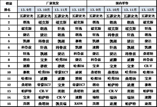 11、12月連續兩個月都打破了我國乘用車市場月銷量最高紀錄。這是因為《大氣污染防治行動計劃》規定北京、上海、廣州等特大城市要嚴格限制機動車保有量。這使京津冀、長三角、珠三角的城市群和特大城市的地方政府對限購熱情大增,傳出眾多地方政府要汽車限購的信息,造成的恐慌性購買繼續成為本月市場最大動力??只判再徿嚺c元旦、春節購車高峰重疊,12月下旬本該銷量更多,但統計結果沒有銷售加速跡象,這是藏銷量的結果。
