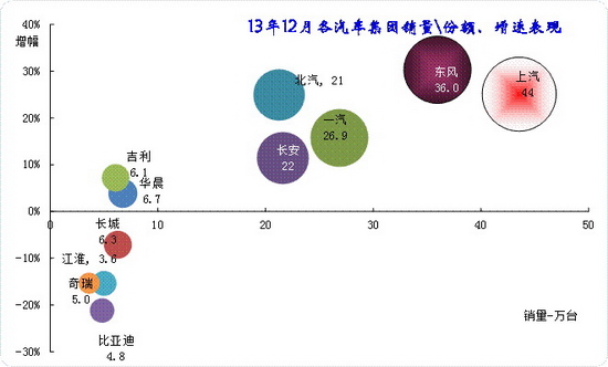 2、主要汽車集團13年累計銷量與12年同期的增長分析