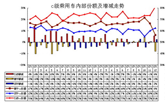 5.1、C級乘用車內部走勢特征