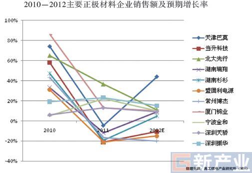 不過,也并非所有的企業(yè)都處境艱難。鈷酸鋰企業(yè)北大先行因獲得東莞新能源(ATL)和天津力神訂單,2011年銷售收入逆勢增長了36.5%,排名上升至第四位。
