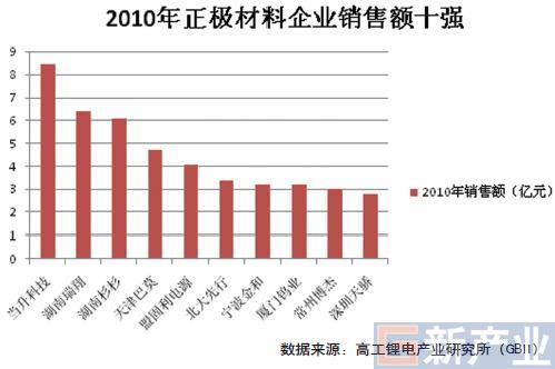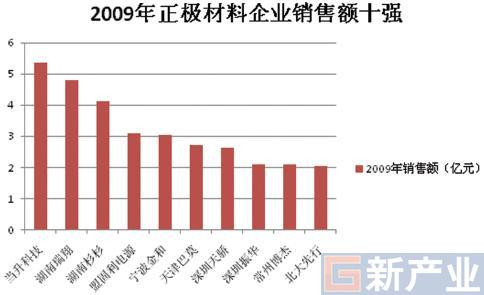 高工鋰電產(chǎn)業(yè)研究所(GBII)調(diào)研結(jié)果顯示,在競爭日益激烈的鋰電正極材料市場,鋰電正極材料的前10強座次已發(fā)生微妙變化。從2009年起,連續(xù)三年位居中國大陸正極材料銷售榜首的當升科技,2012年的排名將退居第三。天津巴莫憑借國際訂單將成為大陸鋰電正極材料的領(lǐng)導(dǎo)廠家。2009年十強門檻2億元2009年,北大先行以2.05億元的銷售額爭得10強最后一席。而當升科技則憑借鈷酸鋰產(chǎn)量占當年國內(nèi)總產(chǎn)量15%以上的規(guī)模,高居2009年銷售榜榜首,湖南的瑞翔和杉杉分列第二和第三位。(圖1:2009年銷售額前十大正極材料企業(yè))2010年增長41%2010年正極材料銷售榜前三甲的排名并沒有發(fā)生任何變化,但是前十強的平均銷售額由2009年的3.21億元大幅攀升至4.53億元,增幅高達41%,十強門檻也漲至2.8億元。