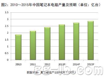 筆記本電腦是目前鋰電池的第二大應用領域。據高工鋰電產業研究所(GBII)整理的數據顯示,2012年中國筆記本電腦出貨量達到2.4億臺(圖2)。