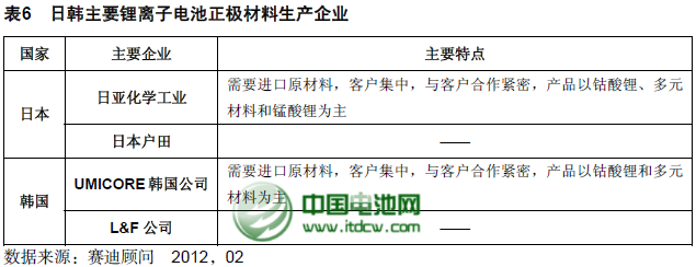 全球范圍來看,鋰電企業(yè)主要集中在日本、中國和韓國,相應的鋰電正極材料的生產也主要集中在以上國家。日本和韓國的鋰電正極材料企業(yè)整體技術水平和質量控制能力要優(yōu)于我國多數鋰電正極材料企業(yè),在高端鋰電正極材料的競爭中有一定優(yōu)勢。
