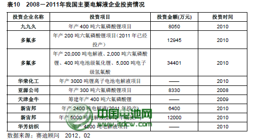 作為全球鋰電池電解液最大的供應國,中國所需的六氟磷酸鋰電解質基本都從日本采購,關鍵原材料的受制于人嚴重阻礙了中國整個電解液產業的發展。近期,國內企業已經充分認識到這點,紛紛加大對六氟磷酸鋰的研發和投資力度。九九久、多氟多、江蘇國泰等企業紛紛投資新建六氟磷酸鋰項目,賽迪顧問認為隨著國內企業在六氟磷酸鋰項目上的中試成功并產業化發展,中國電解液的發展將迎來一個新的里程碑。