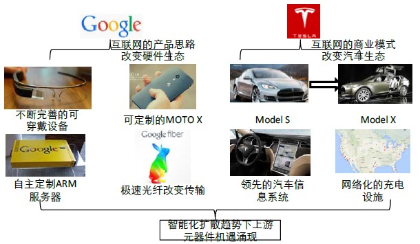 從近幾年的趨勢看,互聯網以及移動互聯網正不斷的改變傳統產業的發展路徑。因此,2014年以及之后的電子產業創新驅動力,將不僅僅局限于傳統的硬件產品廠商。2014年產業創新的龍頭或許將集中在谷歌與特斯拉的身上。谷歌代表了用互聯網的行為來改變傳統終端,特斯拉則是以互聯網的思維來改變傳統產業。