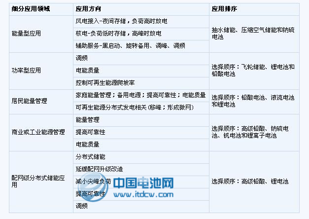 電網(wǎng)儲(chǔ)能的要求主要是能量型應(yīng)用、功率型應(yīng)用、居民能量管理、商業(yè)或工業(yè)能源管理和配網(wǎng)及分布式儲(chǔ)能應(yīng)用等。考慮不同的化學(xué)儲(chǔ)能電池的特性和成本,對(duì)在不同領(lǐng)域化學(xué)儲(chǔ)能電池的應(yīng)用排序如下表所示。