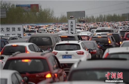 2017年清明小長(zhǎng)假返程高峰期間,京臺(tái)高速進(jìn)京方向出現(xiàn)嚴(yán)重?fù)矶隆V行律缬浾?劉關(guān)關(guān) 攝