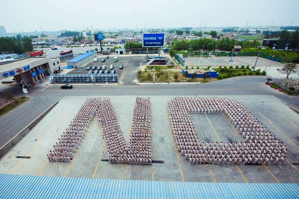 日前國內數十家光伏企業廠區內,員工擺成“NO”造型,表達反對貿易保護行為、要求自由貿易的企盼