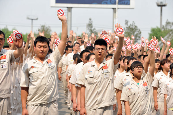 對此,以英利綠色能源、天合光能、阿特斯陽光電力為首的中國光伏企業代表日前通過媒體,聯合發表了《中國光伏企業反對歐盟對華光伏產品“雙反”征稅的聯合聲明》。與此同時,國內數十家光伏企業數千名員工分別在各自廠區擺成“NO”造型,并高舉左手展示“NoTradeProtection”(意為:反對貿易保護)的抗議文字,表達反對歐盟的貿易保護行為、要求貿易自由的企盼。