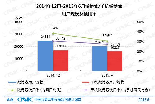 2014.12-2015.6年微博客/手機微博客用戶規(guī)模及使用率