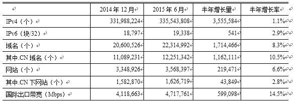 表1 2014.12-2015.6中國互聯網基礎資源對比