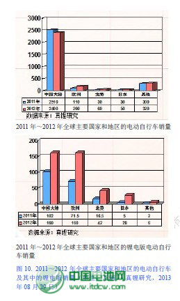 在電動自行車這個領域,鋰離子電池正在快速取代鉛酸電池,速度可能超出了業內大多數人的預計。中國電池網-中國電池雜志戰略合作機構——真鋰研究的數據顯示,2012 年全球鋰電版電動自行車銷量達到396 萬輛,是2011 年197 萬輛的一倍以上。歐洲地區銷售的電動自行車基本上都是鋰電版電動自行車,而且,消費人群存在由老年人為主向年輕人為主的發展趨勢,這強力推動了歐洲市場的發展,使得歐洲2012 年已發展成為和中國大陸并列的全球最大的鋰電版電動自行車市場。