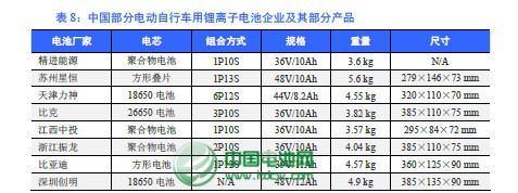 電動自行車用動力鋰離子電池模組的主要參與企業除了上述4 家之外,還有日本NEC、索尼、GS 湯淺,臺灣新普科技、能元科技、必翔電能,以及中國大陸的天津力神、比克、哈爾濱光宇、上海德朗能、河南環宇、浙江振龍、天津雙一力、江西中投、杭州萬好萬家、天津捷威動力、浙江天能、南都電源、山東潤峰、山東神工海特、深圳毅力能源等等。
